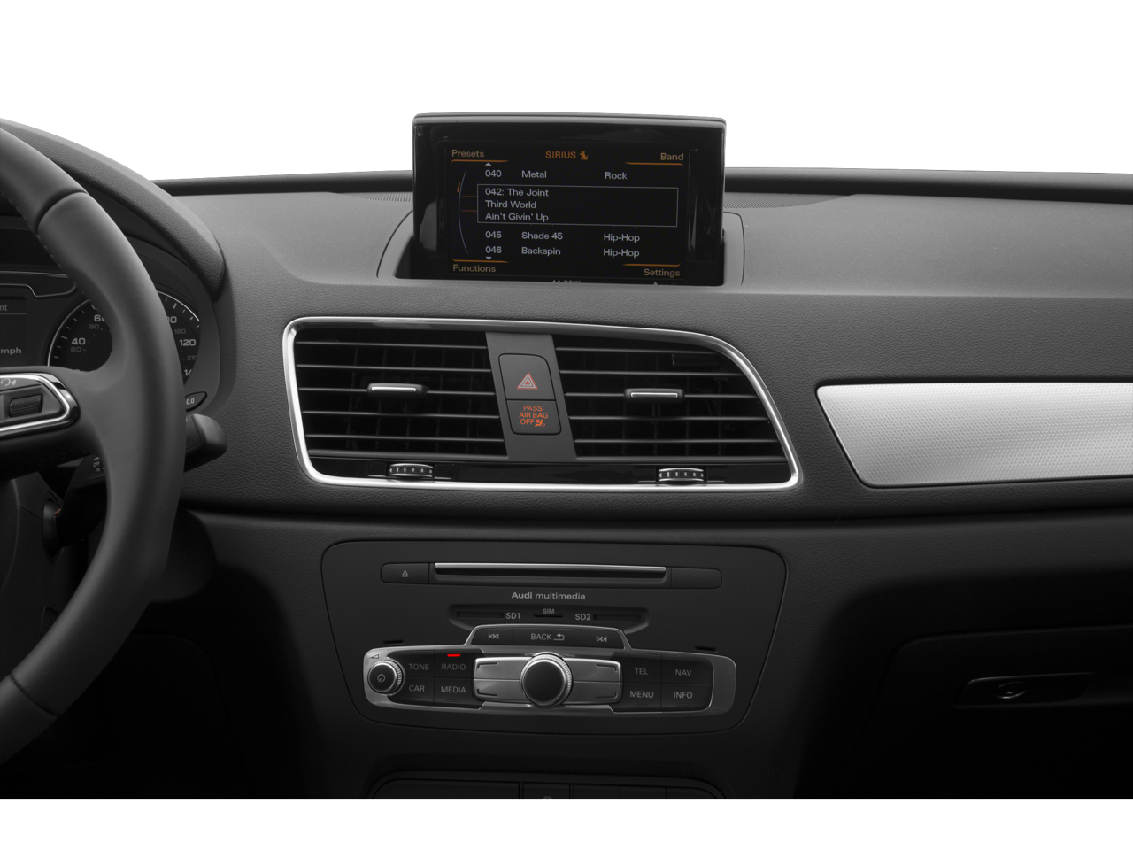 - Radio: Audi Concert System w/AM/FM Radio -inc: CD player (MP3 capable), auxiliary input jack, 12-station presets, speed-dependent volume control, Audi music interface w/Lightning adapter cable, Audi sound system w/10 speakers including front center speaker and subwoofer in rear, 180 watts, 6-channel amplifier, 2 tweeters in the dashboard, 1 center fill speaker in the dashboard, 2 speakers in the front doors, 2 speakers in the rear doors, 2 tweeters in the rear doors, 1 subwoofer in spare wheel well, Bluetooth wireless technology preparation for compatible mobile phones and streaming audio for compatible devices, SiriusXM Satellite Radio all access service w/3-month trial subscription, USB charging port and voice control system