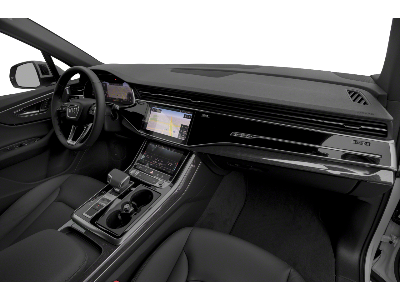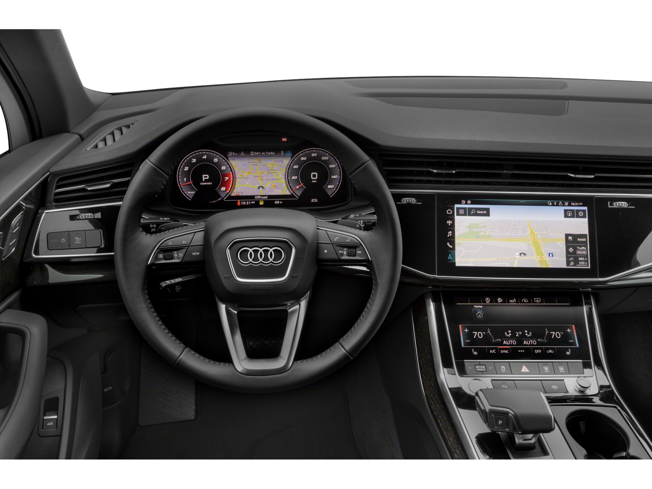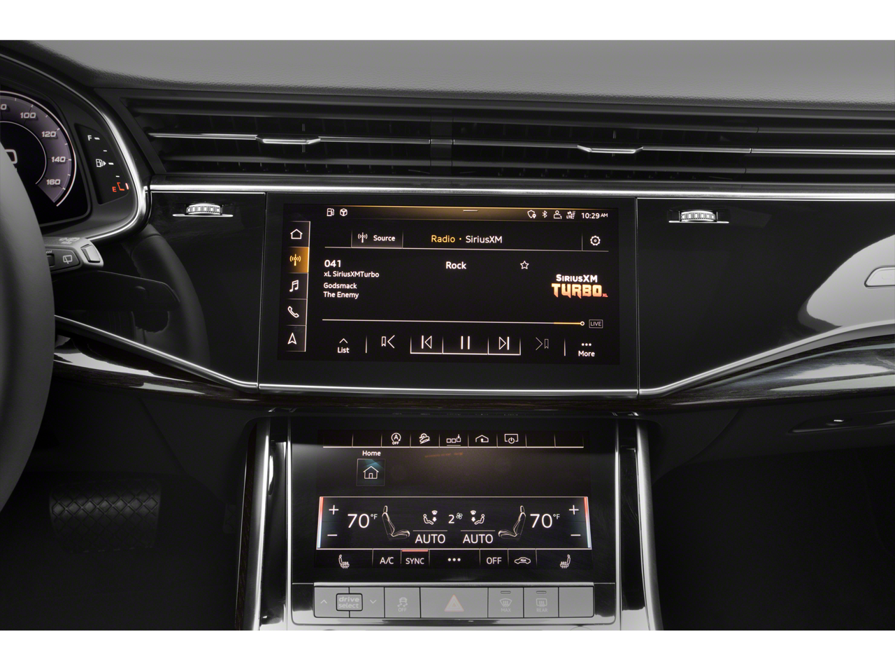- Radio: Audi Sound System -inc: Audi connect w/online services (CARE, PRIME, PLUS), Audi smartphone interface (wired Android Auto and wireless Apple CarPlay), MMI navigation plus w/MMI touch response - 10.1" upper, 8.6" lower screen, preparation for mobile phone (Bluetooth) and SIRIUS satellite radio (w/3-month complimentary subscription)
