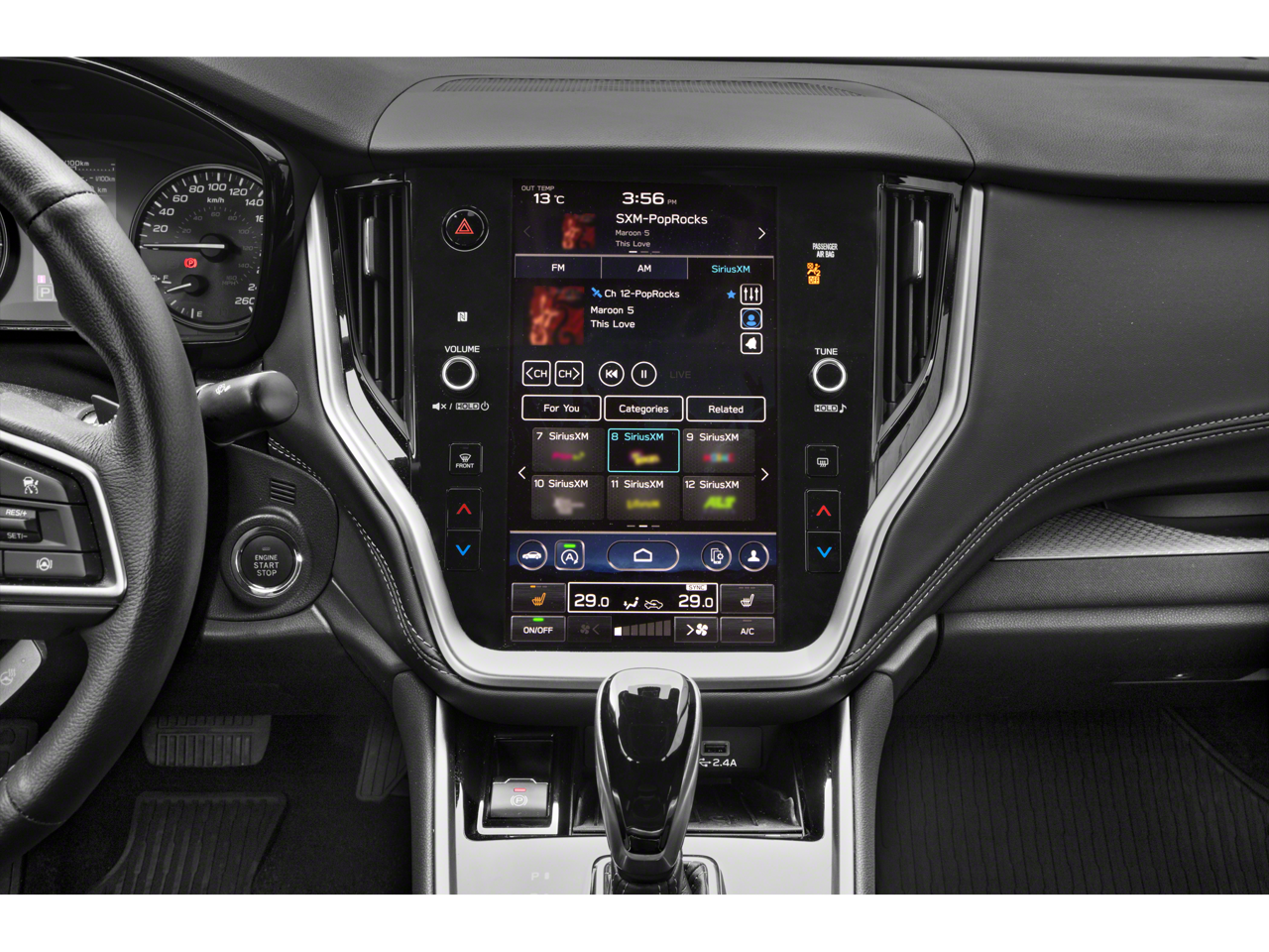 - Radio: Subaru 11.6" Multimedia Plus System -inc: AM/FM stereo, HD Radio, valet mode, multi-touch gesture high resolution display screen, voice activated controls, Bluetooth® audio streaming and hands-free phone connectivity w/SMS text messaging (refer to subaru.com for cell phone compatibility), Near Field Communication (NFC), iPod control capability, SiriusXM w/360L (4 months free trial/subscription required after), SiriusXM Travel Link (3 years free trial/subscription required after), smartphone integration w/full screen view and wireless connection for Android Auto and Apple CarPlay, USB and Over The Air (OTA) audio system update, audio/Bluetooth® steering wheel control switches, 6 speakers, 3.5mm illuminated front auxiliary input jack, illuminated front and rear USB-A and USB-C input/charge ports and roof mounted satellite and connected services
